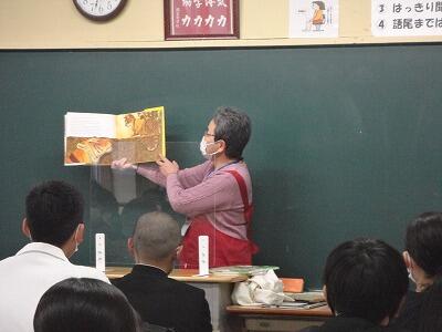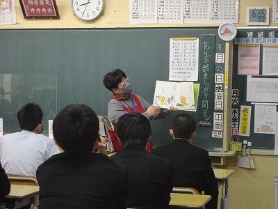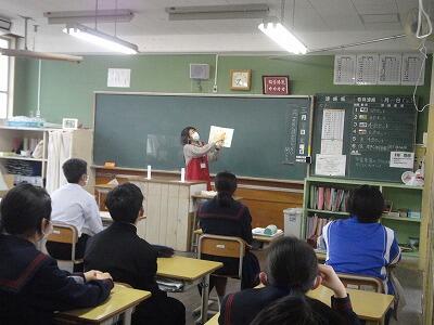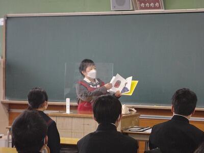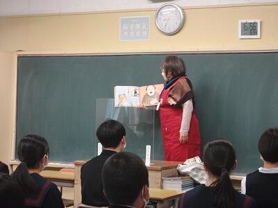 今日が本年度最後の読み語りでした。生徒たちは、前のめりになってそれぞれの話に集中しています。岡中ボランティア「くす楠」の皆さん、来年度もよろしくお願いいたします。