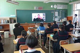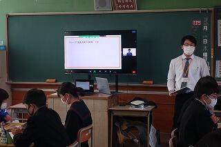 中学校1年生が、SDGsについて調べたことを小学校2年生に分かりやすく伝える「出前授業」を実施しました。本校の校区である2つの小学校に直接訪問して出前授業を実施する計画を立てていましたが、新型コロナウイルス感染症対策のためオンライン出前授業を実施しました。各クラス様々な方法で小学生に伝える工夫をしていました。
