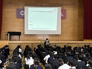 「情報モラルとネットトラブル」「SNSについて」「ネットトラブル事例」「ネットトラブルの予防・対処法」「宮崎県の取り組み」を中心に、わかりやすく説明していただきました。