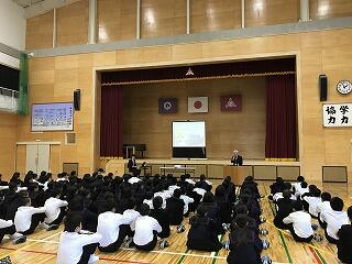 延岡市副市長が来校され、1年生に講話をしてくださる時間もあります。