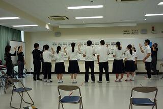 そして、「岡富中学校の校歌を手話で表現しよう!」に全員で取り組みました。