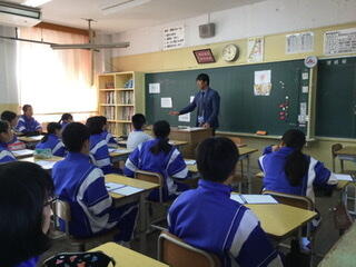 ▲2時間目は、夢について考えるトークの時間です。▲夢先生(榊原投手)が大切にしている言葉は、掃除、笑い、感謝だそうです。▲育成選手として入団し、苦労して1軍で活躍するまでのエピソードを生徒も真剣に聞いています。