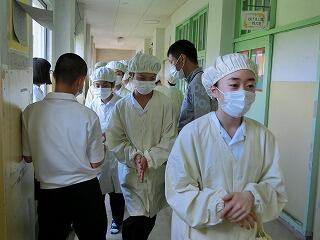 今日は4校時の授業終了から、すべての給食当番が給食配膳室に到着するのが7分でした。準備も早くできていますが、手洗い・消毒もしっかりしていきましょう。