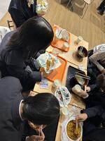 そして、夕食は隣のマーケットプレイスで各自、好きな物を選んで食べました。移動や見学等で疲れている様子でしたが、食事のときは今日一番の笑顔がたくさん見られました。