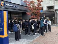 そして、夕食は隣のマーケットプレイスで各自、好きな物を選んで食べました。移動や見学等で疲れている様子でしたが、食事のときは今日一番の笑顔がたくさん見られました。