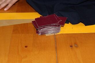 最後は団長対決です。ブラックボックスの中身を当てます。恐る恐る手を入れて触っています(^^) ちなみに中身は「たわし」でした。