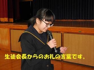 最後に、生徒代表から御礼のことばがのべられました。坂本様から貴重なお話を伺いましたが、最後に言われた「もう戦前という言葉を使わず、ずっと戦後と言えるような世界にするためがんばってほしい」と若い世代である生徒達に託されていたのが印象的でした。