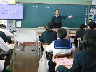 毎年12月に生徒会を中心に取り組んでいる、歳末たすけあい募金( 合計2,695円)を、延岡市社会福祉協議会へ手渡しました。