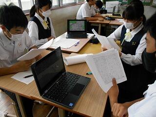 今月は旭祭月間で、来週の20日(金)には総合的な学習の時間に学んだ事について、各学年の発表が行われます。発表に向け、各グループで発表原稿のチェックを行ったり、時間配分を考えたりしながら、学んだ事をスムーズに聞き手に伝えられるように工夫していました。