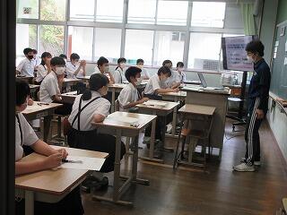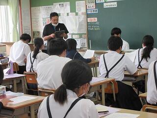 長友さんからは、延岡の食文化を通して観光の活性化を図ることなど、様々な話をしていただきました。また、長友さん自身の中学生時代のお話もしていただき、生徒も親しみを感じながら話を聞いていたようです。