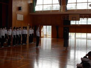 終業式ののち、体操競技で九州大会に出場する2年生の宮本君が大会への意気込みを語ってくれました。ベストを尽くしてきてください。