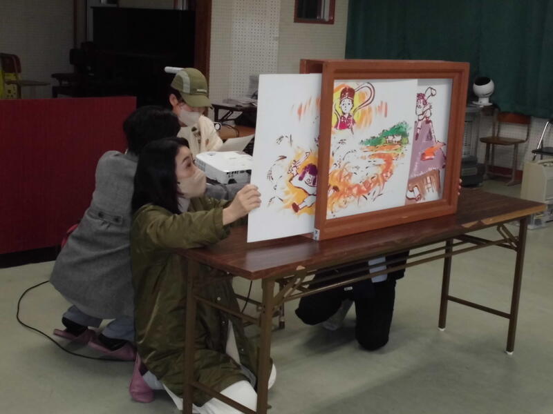 内容は高千穂の天岩戸伝説のお話で、紙芝居は延岡市在住の画家の小島さんが作られたものだそうです。