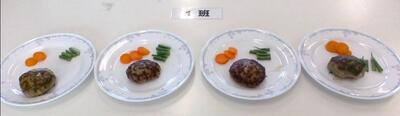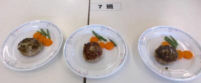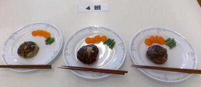 3学期は全学年で調理実習をしています。今日は1-2がハンバーグを作りました。限られた時間の中で、調理をしながら片付けも同時に進めていき、段取り良くできました。どの班のハンバーグもとても美味しそうです。添え物の野菜の盛り付けに個性が出ています。