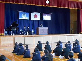 3年生はじっと聴き入っていました。「はなばたけ」の皆さん、朝のお忙しい中、ありがとうございました