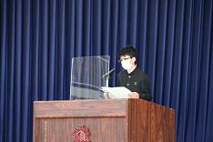 始業式では、各学年の代表生徒と生徒会代表生徒の新年度の抱負を述べてもらいました。一人一人の決意が伝わる発表で、生徒会代表からは、「学校内での挨拶は良くなっています。今年はさらに学校外で地域の方々にも積極的に挨拶していきましょう」。という決意表明がありました。