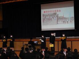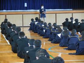 生徒たちはもうすぐ春休みに入るので、春休み中の部活動に関する注意点についての話がありました。