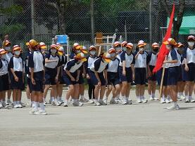 10日(月)、晴天の中、開会式・閉会式・各競技の入退場の練習を行いました。県の緊急事態宣言発令を受け、今回は声を極力出さない方法での練習でした。1年生は、慣れない「クラウチング・スタート」の練習も行いました。