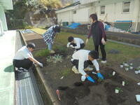 先日、5組の生徒が教室棟前の花壇に新しいハーブの苗を植えました。去年は予想以上に育ちがよく、カモミールやローズマリー、ミントなどたくさん収穫することができました!