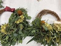 リース作りをするのは、初めての方も多かったのですが、先生に教えていただきながら、思い思いの形をした可愛いリースとスワッグが出来上がりました。