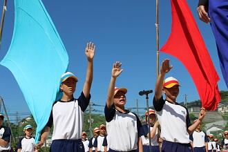 その後、無事に団色も決定し、和やかなムードの中、校長先生より団旗の授与がありました。