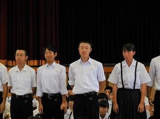 そして、新入生の代表が、「誓いのことば」を述べました。「勉強」「部活動」「先輩との接し方」をがんばり、中学生の自覚を持ち、責任ある行動を心がけ、充実した学校生活を送り、立派な旭中生になることを誓いました。