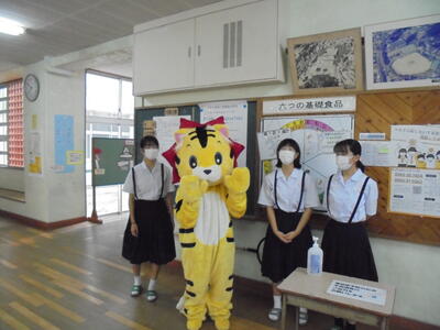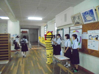 今週は、旭中学校では「朝のあいさつ運動週間」として、生徒会執行部、各専門委員会委員長・副委員長が当番で朝のあいさつ運動を行っています。また、あいさつ運動には「あさとらぴー」も一緒に参加してくれています。