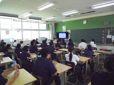本日(7月27日)の4校時に、延岡警察署の方を講師に迎え、「情報モラル教室」を実施しました。