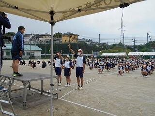 各専門部の部長からは5・6月の活動内容について報告した後、生徒会長からは、「各委員会の取組を活性化すること」と、生徒総会で決定した「立ち止まってあいさつをする」ことの呼びかけ確認がありました。
