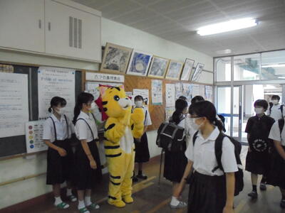 また、本校PTA副会長からは、「地域の方々の日頃の見守りに感謝して、今後もボランティア活動に参加してほしい」と生徒に向けての話がありました。