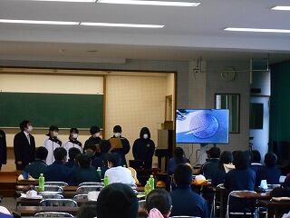 生徒会の各専門委員長・副委員長を中心に、プレゼンテーションソフトや動画を効果的に使い、わかりやすく丁寧な説明が行われました。