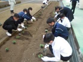23日(水)、昼休みに生活美化委員会のメンバーで、生徒用花壇に花の苗を植えました。最初は慣れない手つきでしたが、最後はあっという間に植えることができました。大きく成長してくれるといいですね。