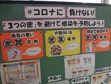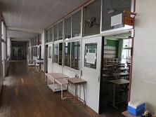 1年生教室前で手洗いをして、1年生は多目的室、2年生は1の1教室、3年生は1の2教室で給食を食べます。(3密防止のため)