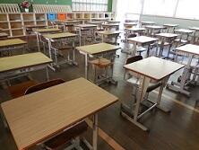 明日にそなえて、各教室の机・イスの消毒を行いました。