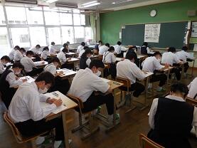今回の実力テストは、1・2年生で学習した内容が出題されました。3年生には進路選択の参考となる重要なテストです。今の自分の実力を確認し、今後の学習に生かして欲しいと思います。