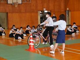 本日、交通安全教室を行いました。3密を避けるため、5校時は1の1、6校時は1の2が体育館に集まり、延岡警察署と延岡地区交通安全協会の方々を講師に招いて行いました。自転車の正しい乗り方・ルール、自転車事故とその対応など、詳しく学ぶことができました。