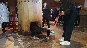 うわさの純粋な人?しかくぐれない柱の穴です。きつそう・・・!