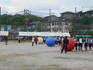 5月14日(日)に体育大会が行われました。前日は雨で準備ができず、実施できるかどうか分からない状況でしたが、当日は次第に天気も回復し、競技の後半には青空も見える体育大会日和となりました。