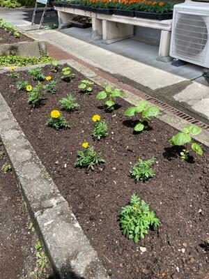 先日、5組の生徒が教室棟前の花壇に新しいハーブの苗を植えました。去年は予想以上に育ちがよく、カモミールやローズマリー、ミントなどたくさん収穫することができました!