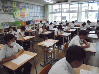 連休中も部活動の大会や練習試合で十分な学習時間がとれなかったかもしれません。しかし、現在の自分の実力を測ることのできる絶好の機会です。自分の希望に少しでも近づけるように、明日までしっかり取り組んでほしいと思います。