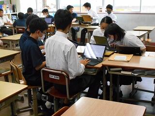慶応義塾大学SFC研究所と連携して行う「論理コミュニケーション」の遠隔授業を実施しました。この取組は、延岡市内の全中学校が参加するもので、本校は3年生を対象に本日からスタートしました。