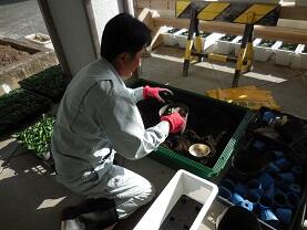 本校技術員の有馬さんが、種から育てた「花の苗」。大陽の光をたっぷり浴びて大きく育っています。花ボランティアの中田さんと有馬さん、毎日お花の手入れありがとうございます。3月・4月がとても楽しみです。