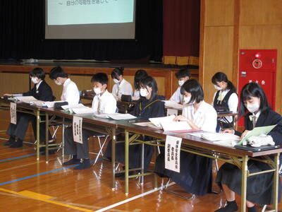 また、各学年代表及び生徒会役員の生徒が今年度を振り返って反省や成長した事など発表しました。
