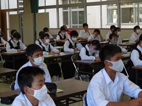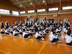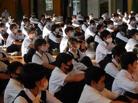 15日(木)放課後、「生徒指導集会」を行いました。「体育大会後の学校生活について」の中で、①志望校合格に向けて ②新生徒会役員の発足に向けて ③登下校時の注意 ④校内(靴箱・傘立て等)の整理整頓について話がありました。最後に「身だしなみチェック」を行いました。