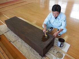 本校の学校技術員の有馬さんが、トンボ製作に続いて、今度は「木製合唱台」を4台作ってくださっています。昨年まで合唱コンクールに使用していたものが、グラグラ揺れて不安定だったためです。市販のものだと1台約8万円。そこで今回も板を切り、組み立て、塗装までお一人でがんばっています。完成が楽しみです。ありがとうございます。