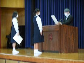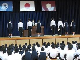 21日(水)、「生徒会役員退任式・就任式」がありました。まず旧役員がひと言ずつあいさつを行いました。「充実していました」「良い経験ができました」「これからも旭中をよくしていきましょう」などの言葉がたくさん聞かれました。次に選挙管理委員長が新役員を発表し、学校長が任命状を授与しました。そして全校専門委員長・副委員長に対して新生徒会長が委嘱状を授与しました。最後に新生徒会長決意表明として、「全校生徒で素晴らしい旭中を築いていく」という決意を述べスタートしました。