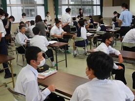 22日(木)、英語科研究授業公開(北部1upサークル)が行われました。県北の小・中学校や教育委員会の方々が與田指導教諭の授業を参観され、その後、研究会が行われました。3年1組の生徒は、多くの参観者にも動じることなく、伸び伸び、生き生きとした様子で授業にのぞんでいました。