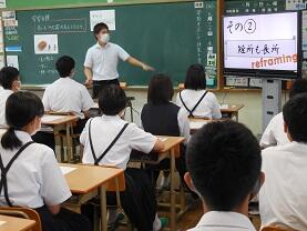 30日(水)5校時、3の1学級活動の研究授業が行われました。「周りの友だちや自分自身の良いところに気づき、互いを褒め合うことができる」をテーマに展開され、活発な発言で盛り上がり、生徒が拍手を送る場面の多い学級活動でした。