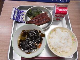 16日(水)の給食は宮崎県内で養殖されたうなぎのかば焼きがでした。コロナ禍における地元食材の消費を目的として提供されました。「はじめて食べた」「大人の味やね」「やわらかくておいしい」「おっきー」など生徒たちにも好評でした。なかには皮を残す生徒や、「さんしょうって何?」などの少数派も・・・。