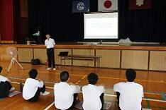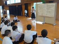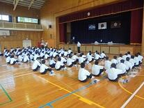 17日(木)は1年生の「学年集会」が行われました。岩村先生は、「あいさつと時間を守ること」の大切さを話していただき、久島先生は、生徒会選挙についての話がありました。最後は、「手つなぎ鬼」で精一杯走り回りました。