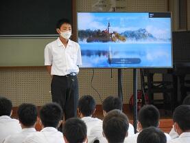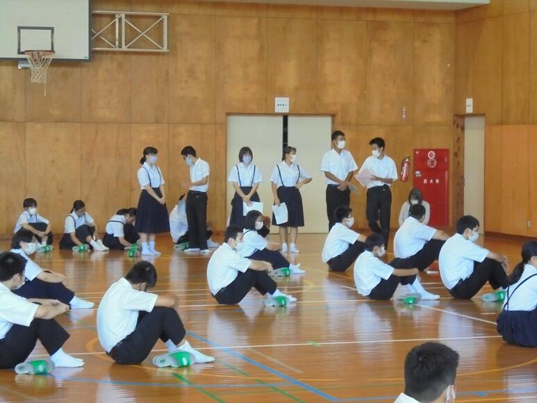 10日(木)朝は2年生「学年集会」でした。まず学年委員長が、始業の日に学年全体で確認した「提出物100%、あいさつと返事ができていますか?」と問いかけ、「良くなっているがさらにがんばりましょう」と呼びかけました。次に各学級の近況についてや、「体育大会を成功させよう」という話がありました。吉松先生からは、秋季大会にむけて「準備が大事」というお話があり、全員真剣に聞き入っていました。